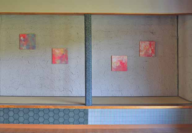 地元赤土壁を使った日本家屋の要素を取り入れた組替え可能な「空間絵画」(インスタレーション)を展示しました。