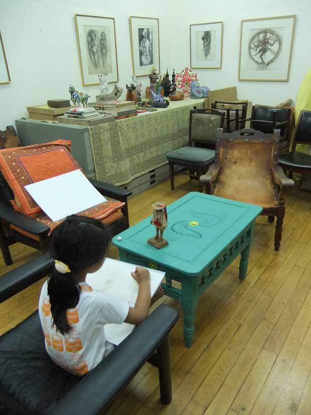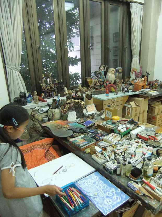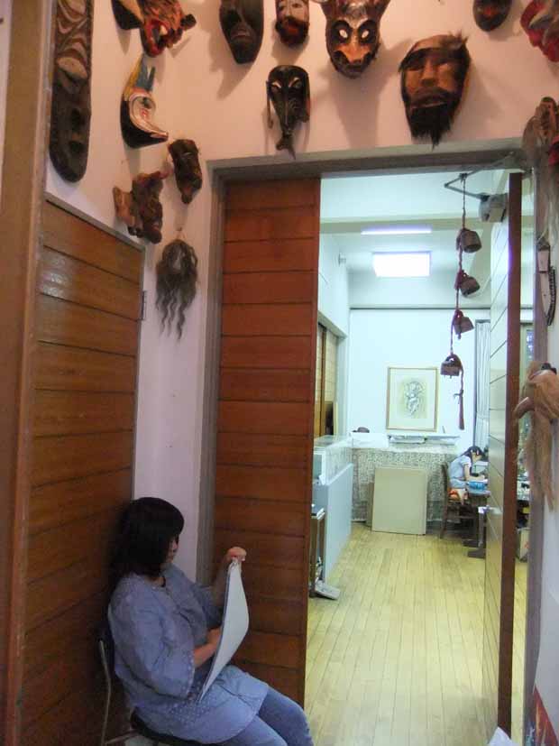 6月のアトリエ 投稿日時: 2013/06/28 投稿者: Tomoko Maezawa この日、子どもクラスの制作テーマは「アトリエスケッチ」です。 子どもアトリエの隣には、利根山光人氏が生前制作されていたアトリエがあります。 この日の子どもたちは光人氏アトリエで、思い思いの物をスケッチしました。 光人氏のパレットを描いています。 生前使っていたそのままの状態で残されています。 メキシコの民芸品を描いています。 光人氏がメキシコから持ち帰った、ユニークで素晴らしい民芸品がたくさん残されています。 迫力満点のメキシコの仮面を描いています。