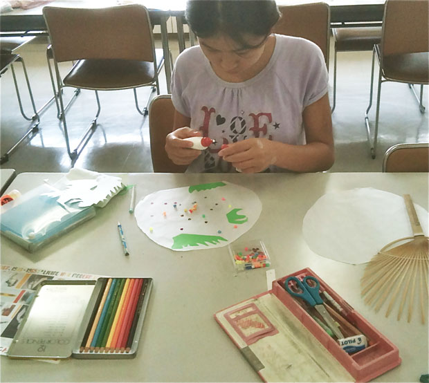 それぞれ自由な発想で、個性豊かなオリジナルうちわを作りました。