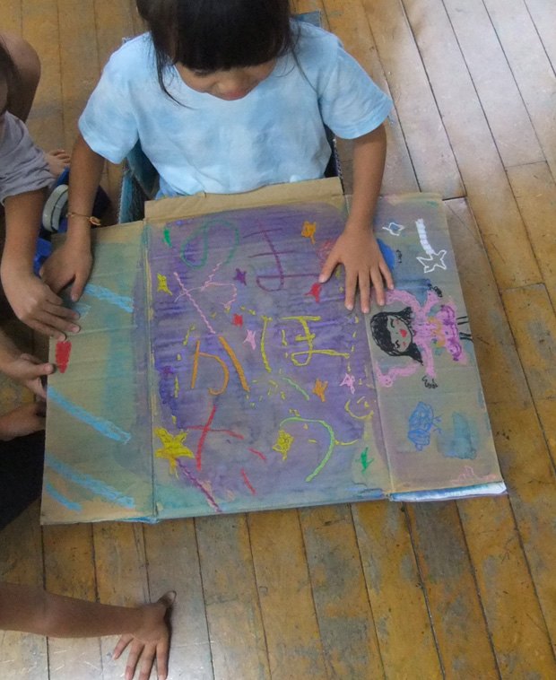 絵が完成しました。次は折れ目を生かした立体制作です。