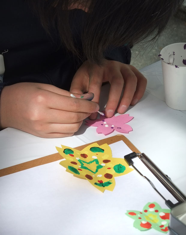 (昨年のワークショップ『デカルコマニーで 桜 クリアファイルを作ろう!』の様子)